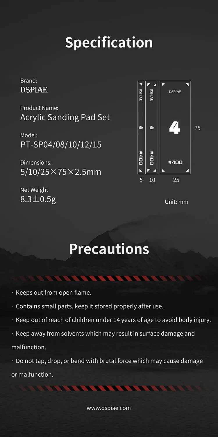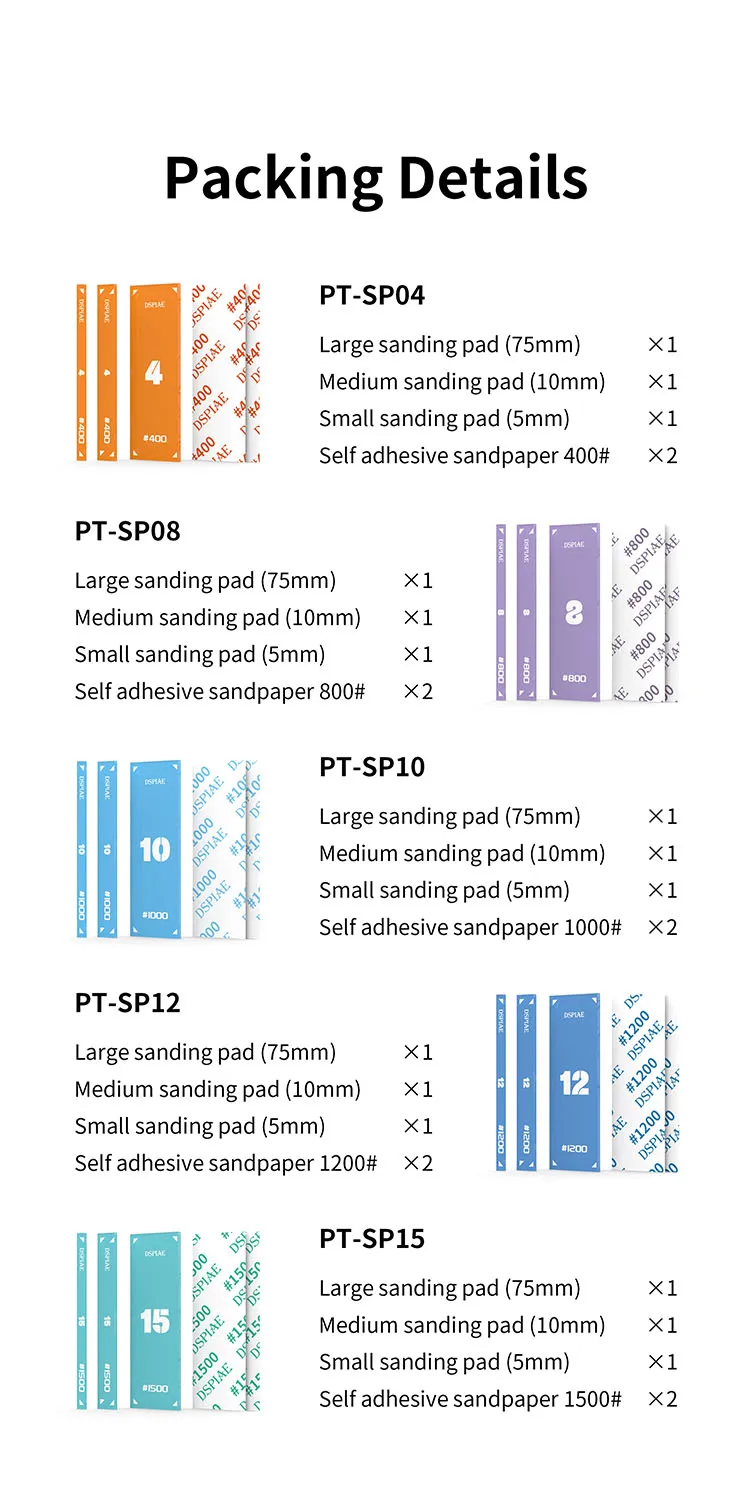 Quick view Add to Cart DSPIAE DSPIAE DSP-S01 REUSABLE SELF-ADHESIVE SANDPAPER SET (400# 800# 1000# 1200# 1500#) SRP: Reg Price: NOW: Php850.00